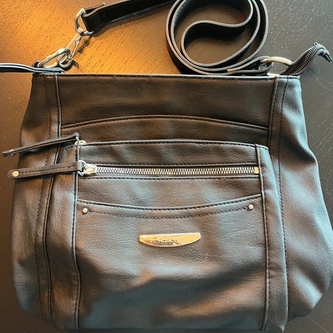 Hvit håndveske / clutch i lær — pent brukt og i god stand. Perfekt størrelse for mobil, nøkler og småting, med praktisk håndstropp for enkel bæring og glidelåslukking. Selges fordi den ikke er i bruk lenger. Kan sendes trygt med Posten/PostNord (frakt fra 25 kr) eller hentes etter avtale. Åpen for bud og rask sending.