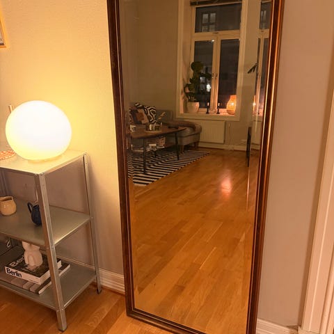 Er antikk/retro. Veier ganske mye men har veggfester så kan henges opp:)