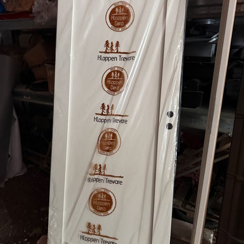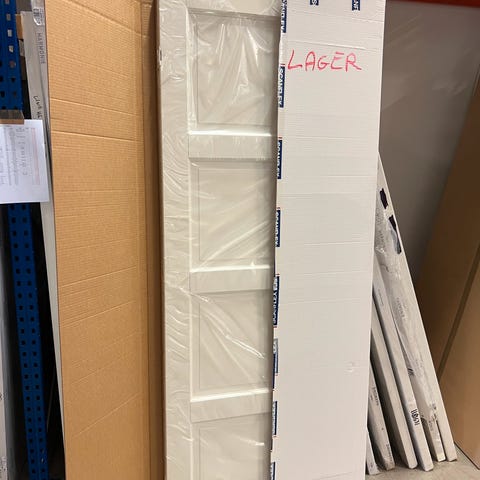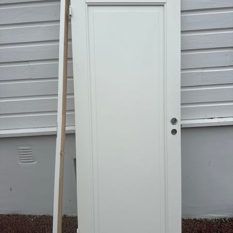 Innerdør Virsjon 1 fra Kloppen. Karm følger med. Høyrehengslet. Dørblad bredde 82,4 cm, høyde dørblad 204,4 tilpasset karm 90x210. Nytt dørblad men transportskade / lagringsskade må påregnes. Må hentes på 2032 etter nærmere avtale.