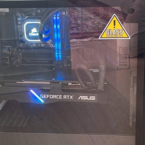 The case is new, and the PC is built with white components, giving it a clean and modern look with RGB lighting.