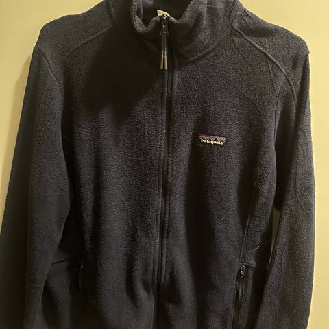 Selger en svart fleece fra Patagonia i damemodell, størrelse M. Plagget er i svært god stand, og fremstår som helt nytt – ingen synlige bruksmerker, ingen nupper og ingen slitasje.