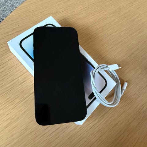 Jeg (60 år) selger min 2 år gamle iPhone 15 Pro 128 GB Svart titan