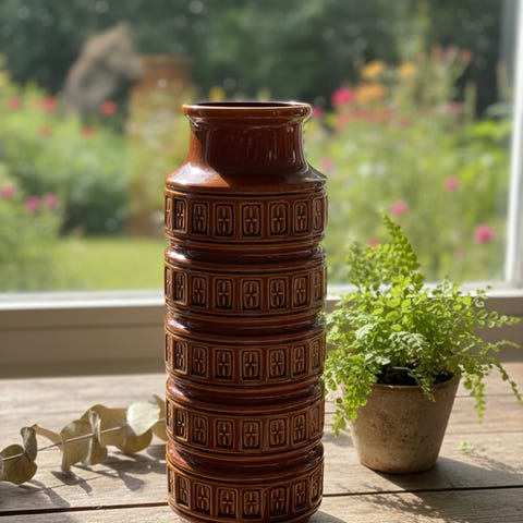 Materialet er en slags keramikk. Uten merker eller skader. Høyde 44cm, bredde 33 cm.
