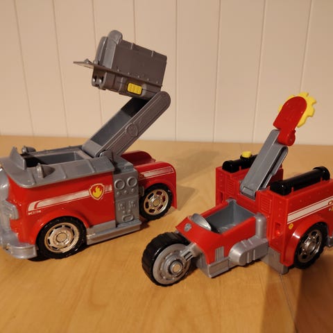 Paw Patrol brannbil leke. Inneholder bevegelige deler som stige, vannkanon og dører. Egnet for barn som liker rollelek med redningskjøretøy. Liten brannbil som sett på bilde følger med.