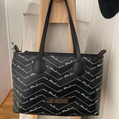 dameveske laget av kunstlær. Vesken har skulderstropper og en romslig innside med glidelåslukking og flere lommer for oppbevaring.