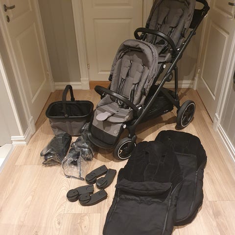Solgt, CYBEX gazelle S søskenvogn Black, mye tilbehør
