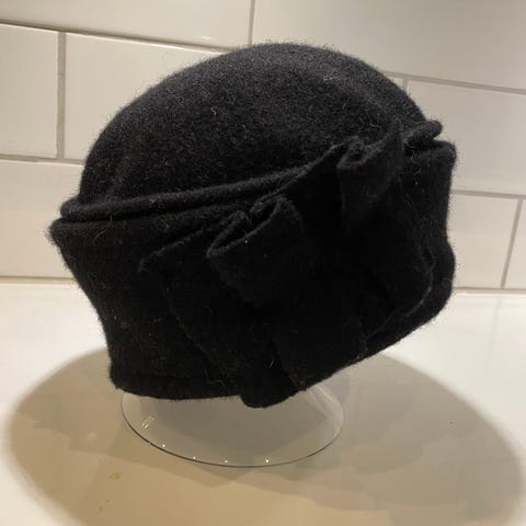 Vinterlue i fargen sort, laget av 100 % lammeull og 100 % lammelær.