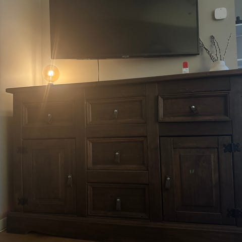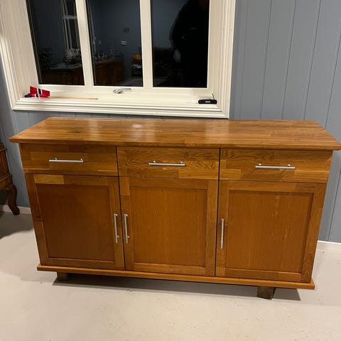Selger en pen vinklet sjenk. Laget av solid materiale.