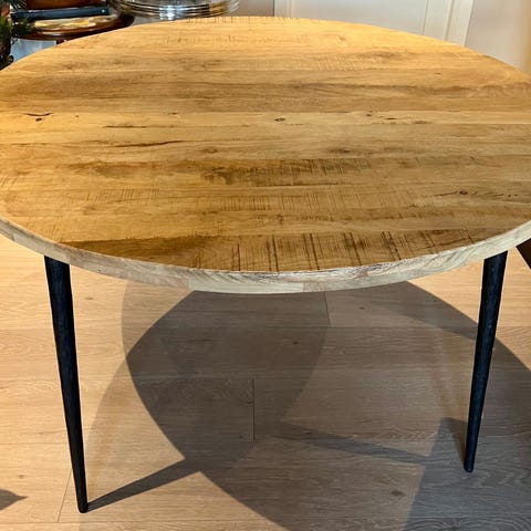 Godt brukt spisebord med to klaffer, totale mål. Ca 90×190×76