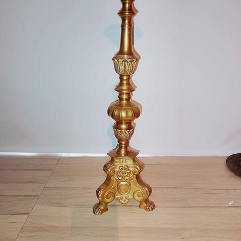 Gullfarget veggklokke fra Westerstrand. Fra 40-50-60-tallet. I fin stand. Usikker på om den virker for nøkkelen mangler. 59×32 cm.
