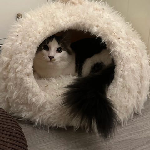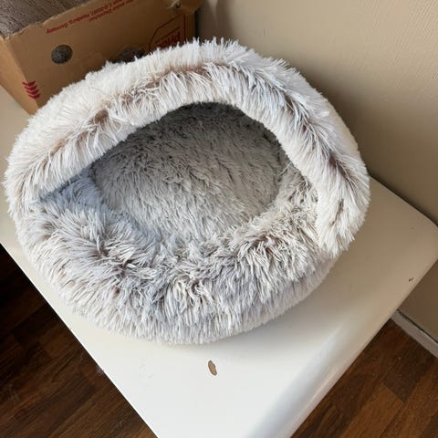 Selger en supermyk og fin katteseng. Den er ikke blitt brukt i det hele tatt av vår sære katt.