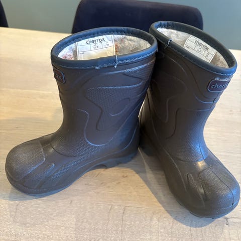 Viking barnestøvler, størrelse 29, i svart farge. Støvlene er brukt av et barn, en vinter.