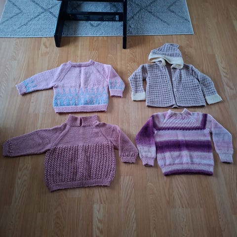 Ullklær fra hust and clair, name it, danske dilling (økologisk ull), polarn og pyret, pr. pent og lite brukt over kort tid da jenta mi vokste plutselig ut av det meste. De fleste plagg er ull bambus, noe renn ull (et sett fra dilling og et annet sett, samt busker fra Pop), et sett med ull silke blanding. Den ene buksa fra dilling har et lite hull som lett kan repareres, ellers hele fine plagg