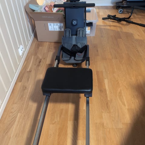 Benefit B520 treningssykkel med digitalt display som viser treningsdata. Sykkelen har justerbart sete og håndtak, samt pedaler med stropper for sikker bruk. Egnet for innendørs trening. Den fungerer ikke som den skal. Det er ikke mulig å endre belastningen via displayet. Kan nok repareres