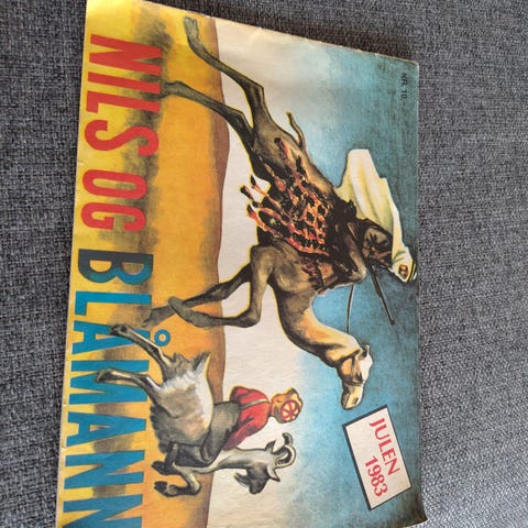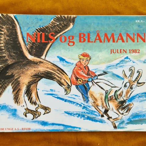 Nils og Blåmann Julen 1937. Omslag mangler. En brett midt over heftet, og en liten avreven bit av et hjørne bak.