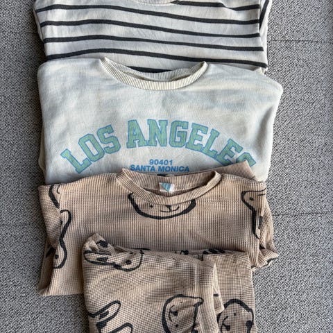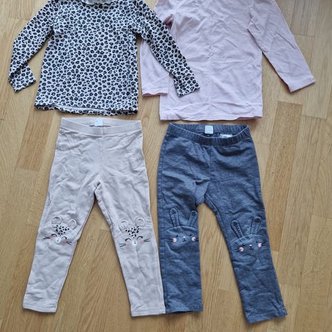 H&M barneklær i størrelse 104 for unisex. Klærne har flerfarget design og inkluderer ulike plagg som gensere, jakker og bukser. Materialer og spesifikke plaggtyper varierer i settet.Fint litte brukt som ny!