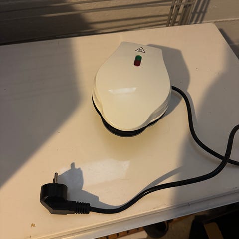 Vaffeljern. Bruker litt lang tid på å bli varm (alltid vært sånn). Brukt mindre enn tre ganger.