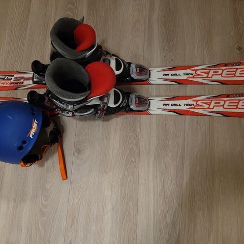 Pent brukte Nordica Speedmachine 2 alpinstøvler i størrelse 20-20,5 (245mm) selges rimelig. Fargen er rød og svart. Støvlene har spenner for justering.