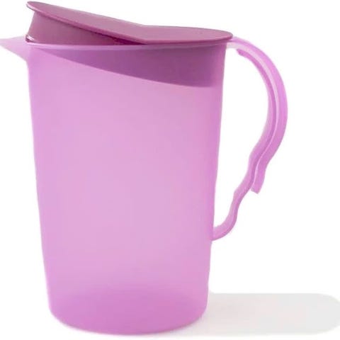 Kaffekanne fra Tupperware (1L) med åpne-lokke funksjon på toppen. Det lille «øyet» på lokket viser om kannen er åpen eller lukket.