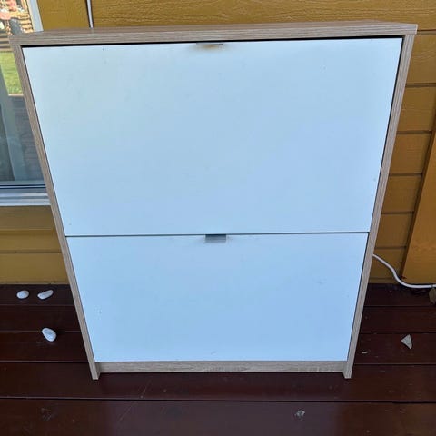 2 stk. doble skoskap, Trones, fra IKEA selges. 400kr for begge to, pent brukt. Skruer følger ikke med. Må hentes. Se utdypende mål på bilde.