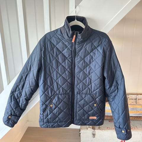 Vind og vannavvisende frakk. Den har 2 ytterlommer med glidelås.