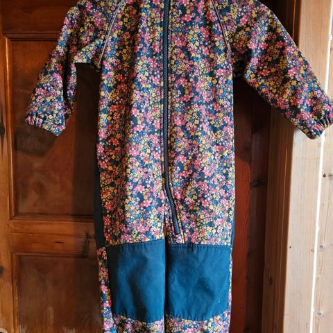 Magisk softshelldress fra name it i str 98, kommer frem hjerter på dressen når den blir våt. Noen flekker på knær, mage om rumpe som ikke er forsøkt fjernet