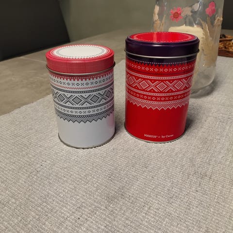 Ubrukt, romslig matboks med Marius-mønster.