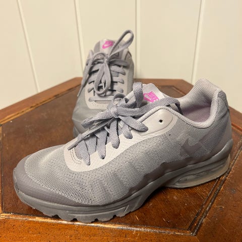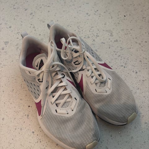 Nike Air Max løpesko i størrelse 39. Skoene har en rosa farge og er laget for løping. Materialet består av mesh og syntetiske elementer som gir ventilasjon og støtte.