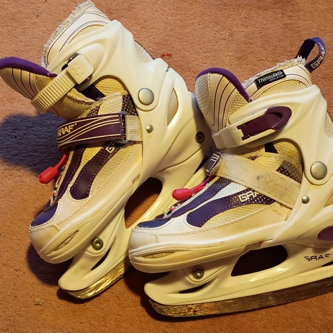 Pent brukte Stuf skøyter. Regulerbare, str 28-31. Mangler beskyttelseshylser.