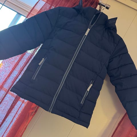 Vinterjakke med refleksmateriale fra merket Kayoba. Barnet vil garantert vises på mørke dager og kvelder. Jakken er varm, har hette og to lommer med glidelås. Enkelte smårifter i refleksen, men ellers uten hull.
