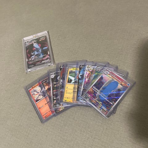 Selger en pakke med 8 Pokémon-kort, kjøpt i Tokyo, Japan.