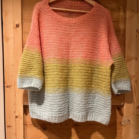 Jean Paul Melinda genser i størrelse M for kvinner. Genseren er aprikosfarget og laget av mohairull, som gir et mykt og varmt materiale. Passer til hverdagsbruk og kan kombineres med ulike antrekk.