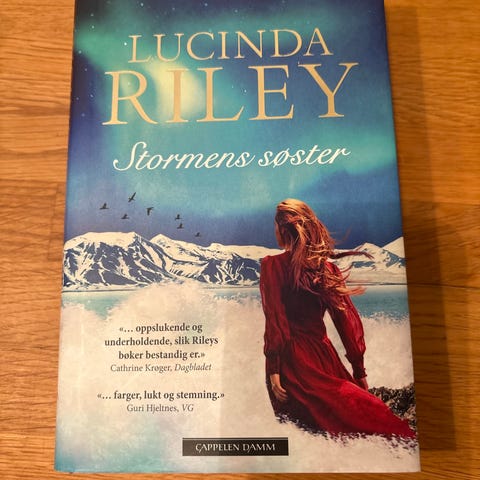 Lucinda Riley Solsøsteren bok. Roman utgitt av Cappelen Damm, del av en populær bokserie.