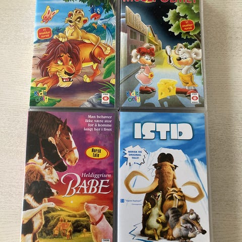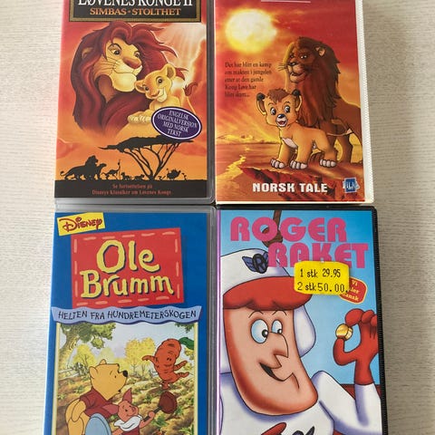VHS Barnefilmer. 4 pk til kr 200,-