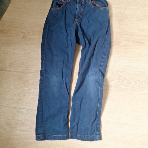 Selebukse i grønn dongeri med søte broderier. Brukt svært få ganger, og god som ny. Litt liten i str, passer best str 116, selv om lappen sier str 122.
