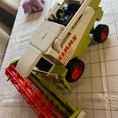 Godt brukt leke-skurstresker. Claas (selv om merkene er tatt av. Skjærebord kan tas av, har tilhørende tilhenger. Skurtreskeren har korntank med tømmefunksjon.