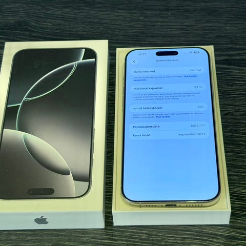 Selger en helt ny og uåpnet iPhone 16 med helt ny skjermbeskyttelse og et ubrukt deksel som følger med salget.