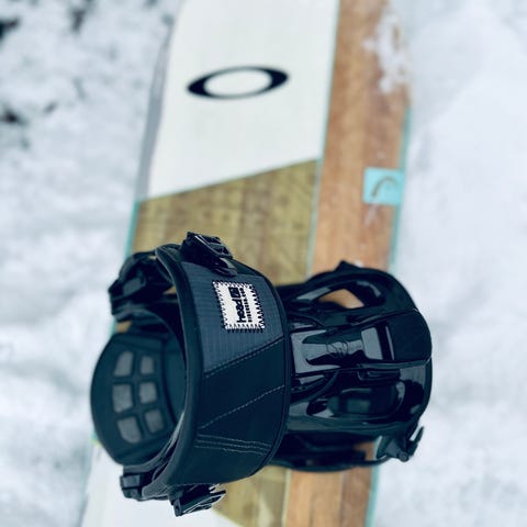 Snowboard bindinger i størrelse US 9 - 11/L med hurtiginnstigning - en rear-entry-mekanisme som lar deg gå raskt inn og ut av bindingen ved å felle ned bakstykket (highbacken)