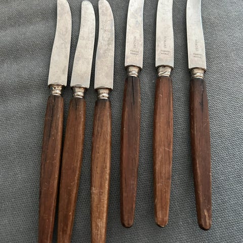 Selger 5 FRUKT KNIVER i Stainless stål med teak skaft.