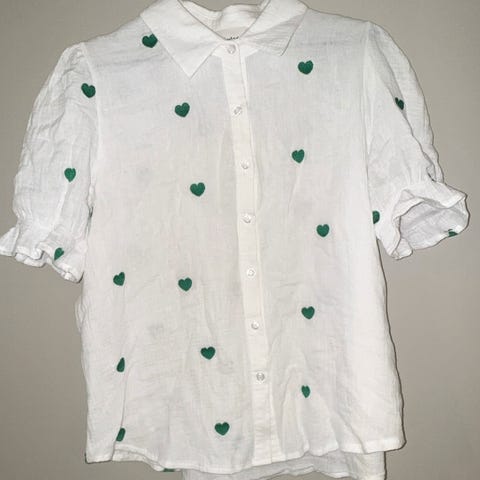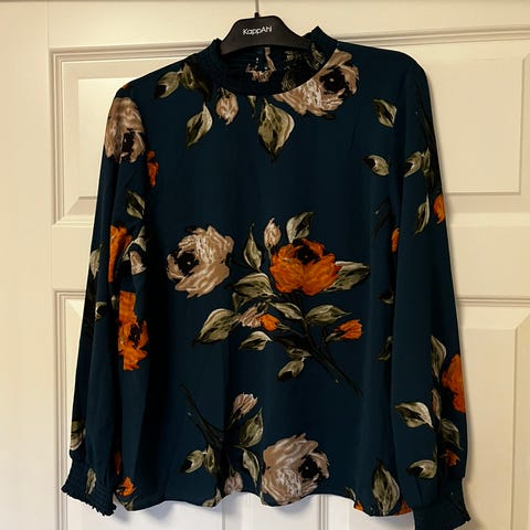 Flott bluse, tror det er str. L. Rosa for, halvlange ermer.