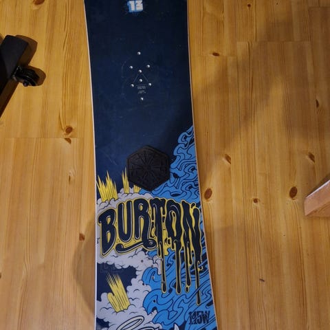 Burton Frontier snowboard med en lengde på 157 cm , selges med bindinger . Er noen merker oppå på snowboardet å noen merker på bindingene ( trur det også kommer fram på bilde ) . Cartel bindinger .