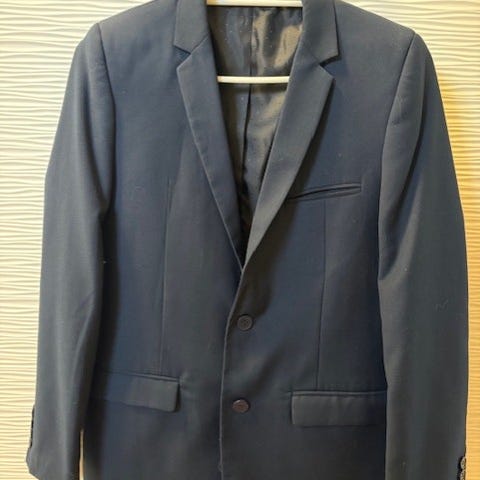Selger dressjakke og skjorte fra Jack and Jones i str 176. Kun brukt 2 ganger. Skjorten er bomull og dressjakken blanding og polyester og ull.