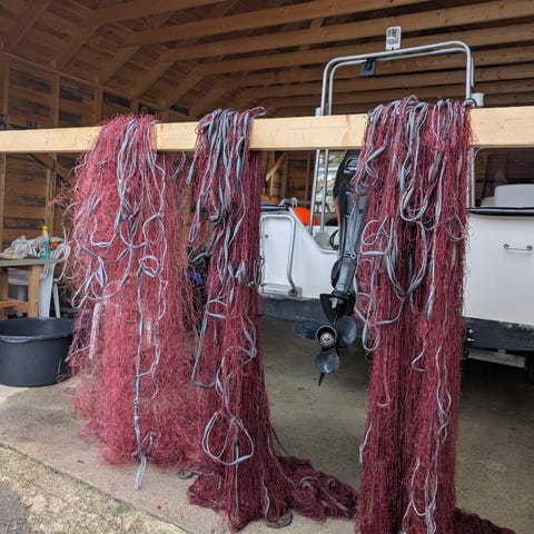 3 stk sammensatte fjordgarn selges - det er forskjellige maskevidder på de.