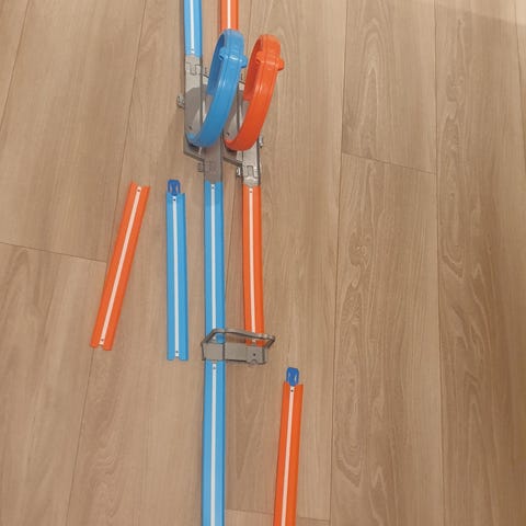 Gøyal Hot Wheels bane med motor som sender biler til toppen av spiralen.