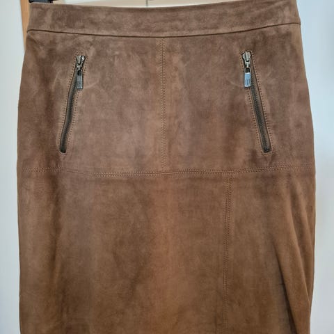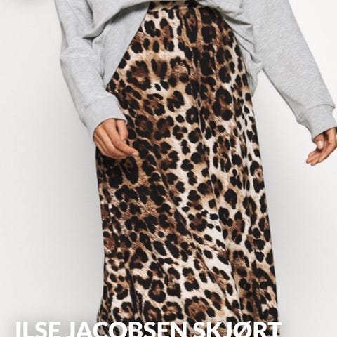 Ilse Jacobsen skinn skjørt i størrelse XL, fargen svart. Laget i skinnmateriale. Strikk i livet og lommer i sidene. Passer en L og XL.