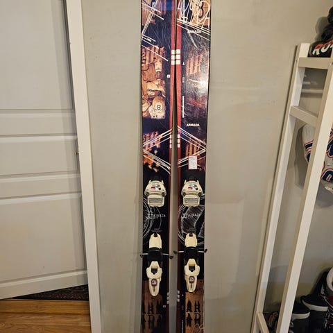 Armada Jib Rocker ski med lengde 169 cm. Ski med bindinger montert, egnet for bruk på snø for alpint eller freestyle skiaktiviteter.