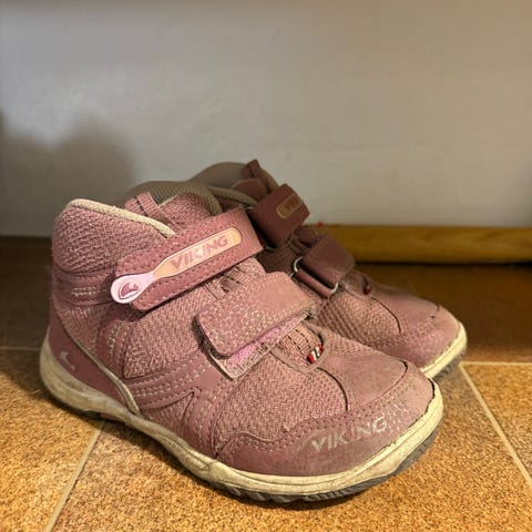 Skoene er kun brukt innendørs ved en anledning, og har lilla farge.