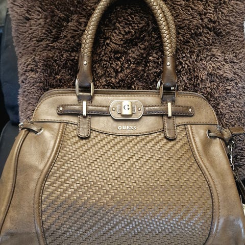 Guess dame veske i svart materiale. Vesken har en rund metallhåndtak og et romslig hovedrom med innerlomme. Designet for hverdagsbruk og passende for ulike anledninger.