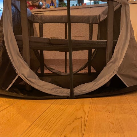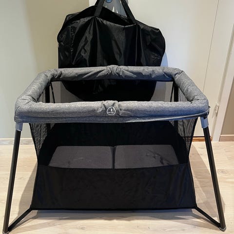 Best - i - test - vinneren Aeromoov reiseseng / lekegrind med spedbarnsforhøying selges. Kun brukt et fåtall ganger. Fremstår som ny.