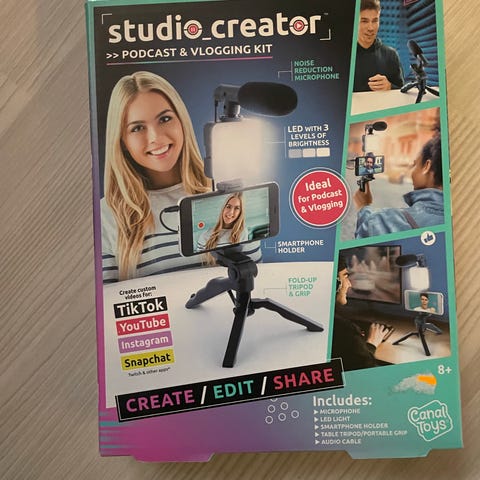 Med Studio Creator kan barn og voksne lage videoer som en proff. Med vakkert lys og spesialdesignede bakgrunner kan videoene tas til neste nivå, ved hjelp av green screen kan bakgrunnen velges mer fritt enn noen gang. Still inn lyset og ta opp videoer foran den grønne skjermen, deretter velges en ønsket bakgrunn fra favorittappene. Her er muligehtene uendelige når humør, interesser og kreativitet skal uttrykkes gjennom video, som kan deles online eller privat med venner og familie.